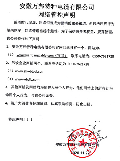 鄭重聲明:安徽萬邦特種電纜有限公司官方網站為:www_wanbangcable_com.flowergq.cn,除此之外無任何子網站或合作網站,其余均為假冒偽劣。電話:0550-7621728 13485756353 地 址:安徽省天長市滁州高新技術產業開發區經四路29號